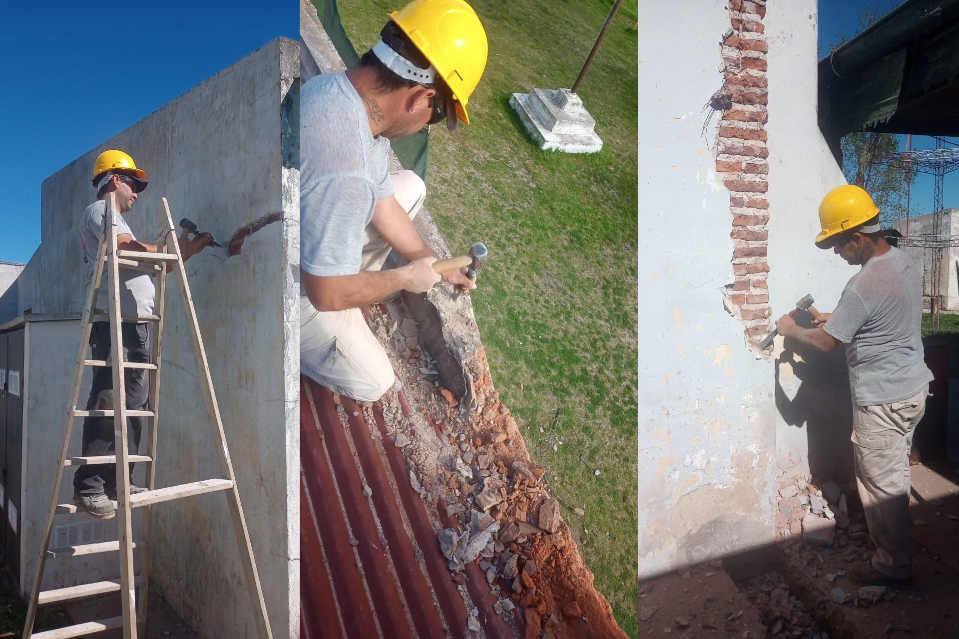 Las tareas se concentran principalmente en el sector de cocina-comedor, donde se reemplazarán las chapas del techo afectadas por filtraciones y se ejecutarán reparaciones en cielorrasos, revoques, pisos y mampostería fisurada. También se reconstruirá la pared frontal del edificio, dañada por un hundimiento en los cimientos.