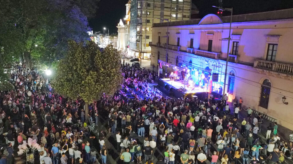 Con el histórico Colegio del Uruguay como marco, en la Plaza Ramírez, el dúo protagonizó un recital que fue “una mezcla, porque con Juan hace mucho tocamos juntos y hace muy poco sacamos el álbum ‘Ahora, Rock’, pero para hoy quisimos hacer una especie de lista bastante mezclada. Algunas canciones de Juan viejas, que tocamos hace mucho tiempo, algunos tangos que son originalmente del dúo, una parte de Ahora Rock, que también es original del dúo”, detalló Vitale.
