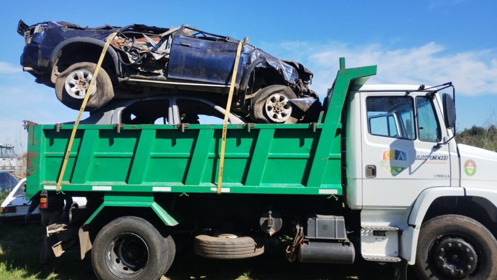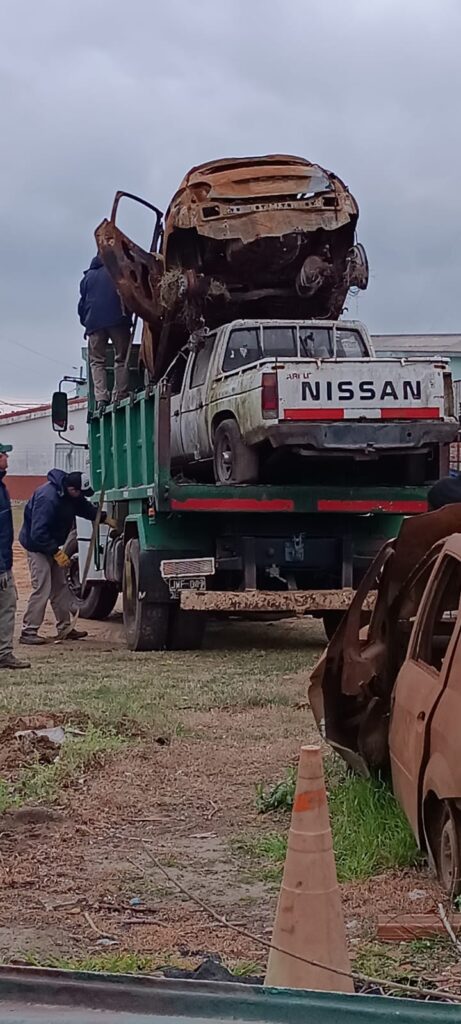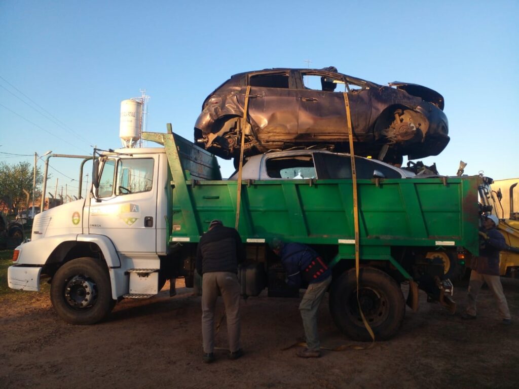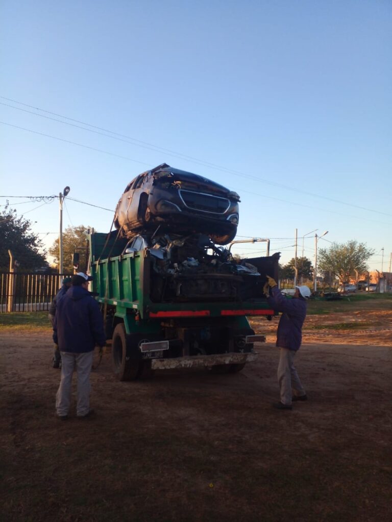 Y en un trabajo conjunto con el Destacamento Policial de Colonia Ayuí y este municipio, se procedió a trasladar todos los remanentes de autos siniestrados y secuestrados con el fin de mantener limpia la zona lindante a las instituciones educativas y otras.