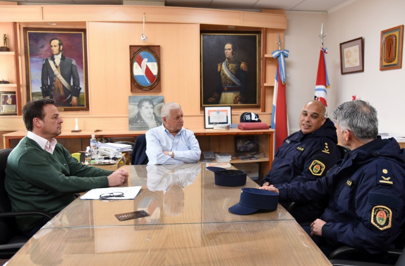 La ejecución de un programa conjunto en los barrios, a través del esfuerzo compartido entre el Municipio y la Policía de Entre Ríos, fue uno de los temas de especial interés que abordaron este martes el intendente José Lauritto, acompañado del secretario de Gobierno Oscar Noir, con el jefe departamental de Policía, Crio. My. Esteban Allegrini, quien concurrió con el subjefe de la fuerza, Crio. Ins. Martín Tello.