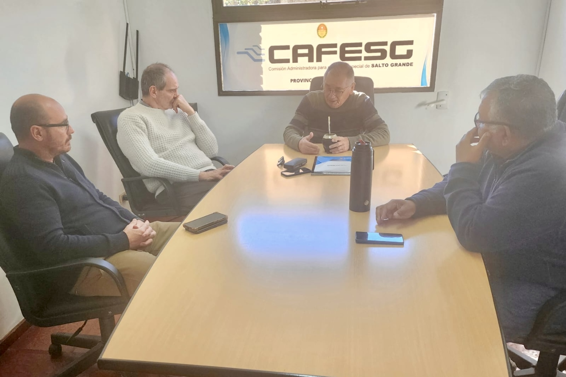 El secretario de Deportes, Sebastián Uranga, acompañado por el director general de Deporte Social y Educativo, Ricardo Lupi, visitó la sede de la Comisión Administradora para el Fondo Especial de Salto Grande (Cafesg) en Concordia, donde fue recibido por su presidente, Carlos Cecco.