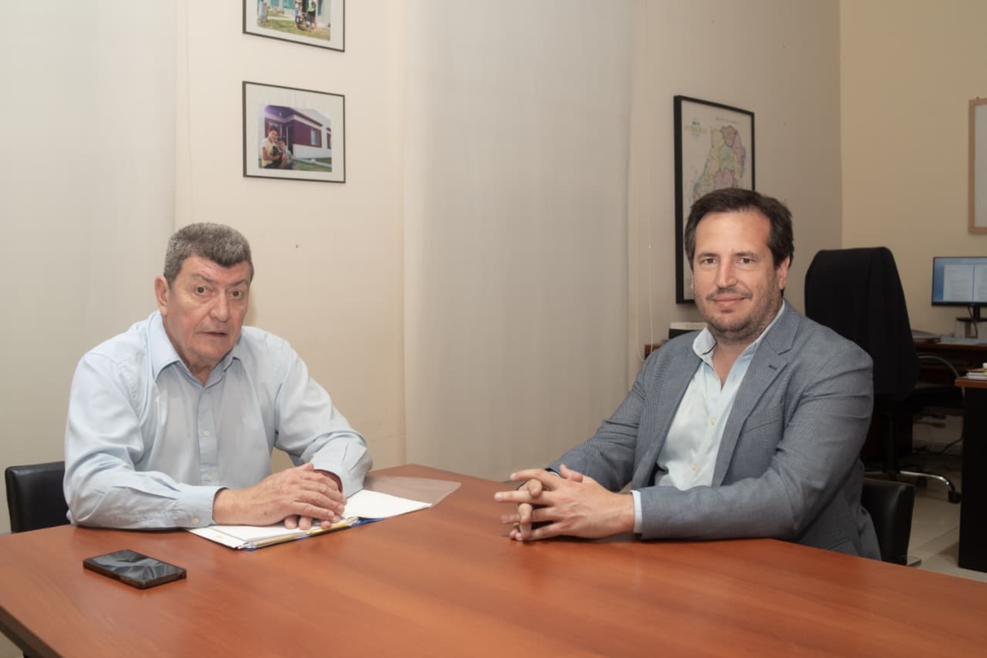 El presidente del Instituto Autárquico de Planeamiento y Vivienda (IAPV), Manuel Schönhals, mantuvo una reunión con el intendente de Larroque, Francisco Benedetti, donde se abordaron estrategias para fortalecer la política habitacional en la localidad en el marco del programa Ahora Tu Hogar.