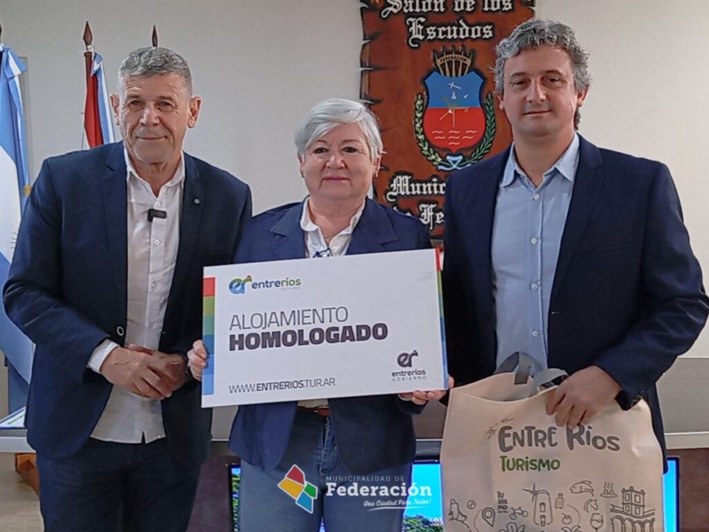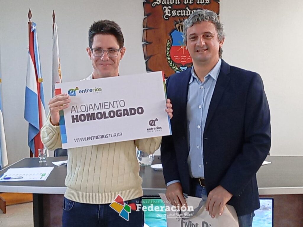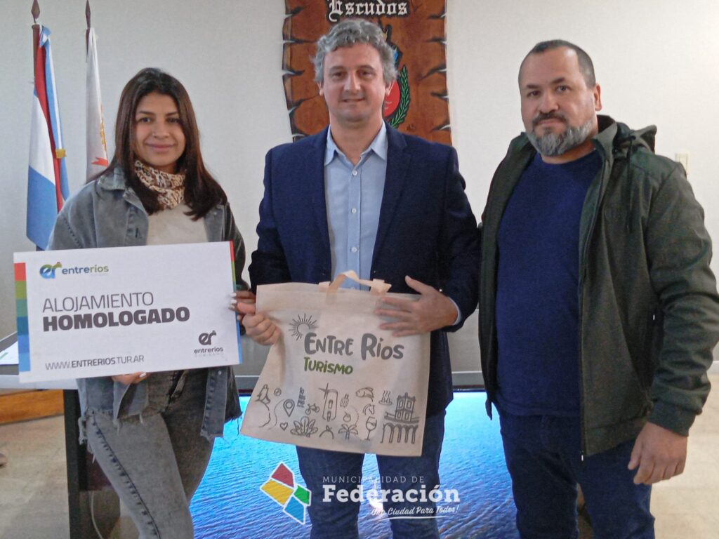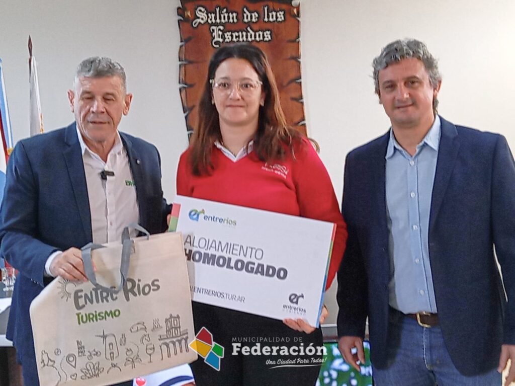 El Presidente Municipal de la ciudad de Federación Ricardo Bravo, recibió en la mañana de este martes, al Secretario de Turismo de la Provincia Jorge Satto, quienes entregaron junto al Secretario de Turismo de Federación, Ezequiel Marozzini, certificados de homologación y recategorización a establecimientos turísticos locales.