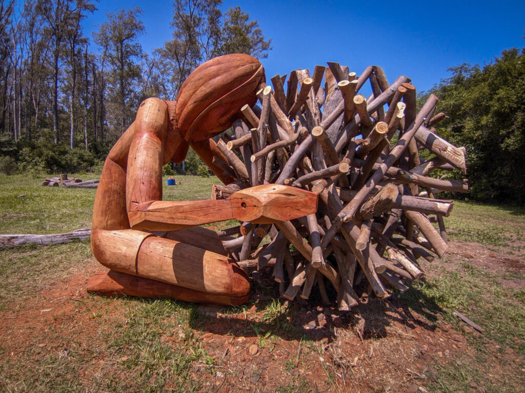 “Estamos llevando adelante acá un trabajo en el cual va a ser principalmente una actividad de entretenimiento para aquellas personas que lo quieran hacer, una pasarela colgante, también, por supuesto, hemos hecho acá en la entrada de Chaviyú una estatua de madera, que el significado y el mensaje que se quiere dar con esto es que, es ambiental, En donde hay una mujer abrazando al planeta, todo hecho de madera, si ustedes lo pudieron ver, significa que la madre tierra abraza al planeta para que lo podamos cuidar”.