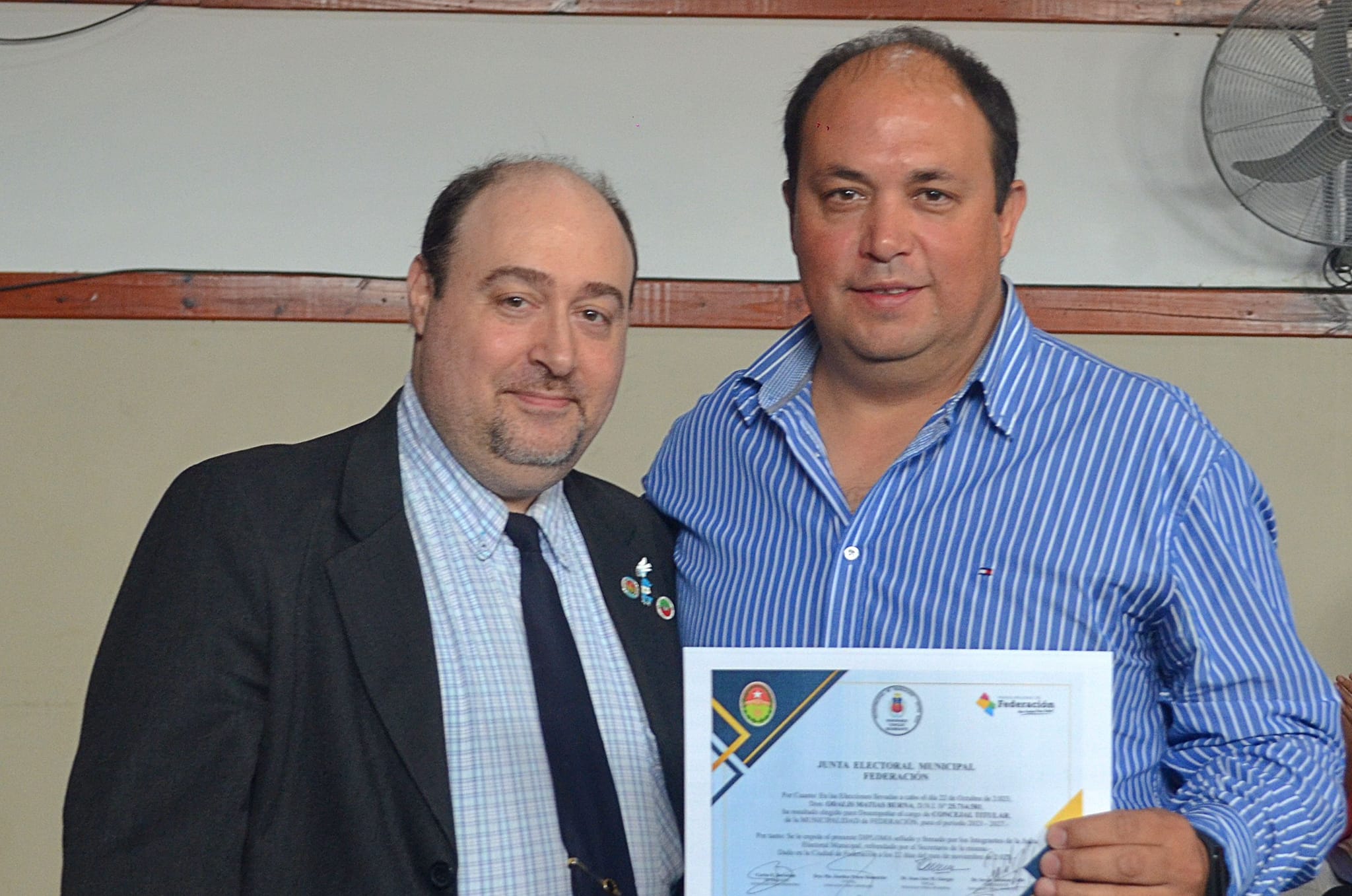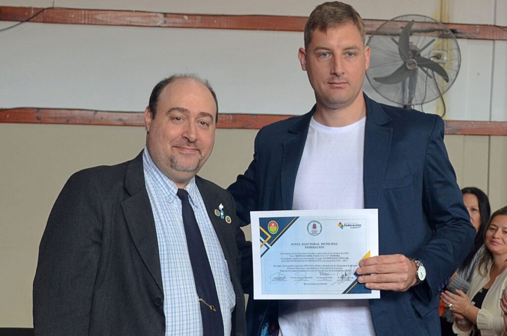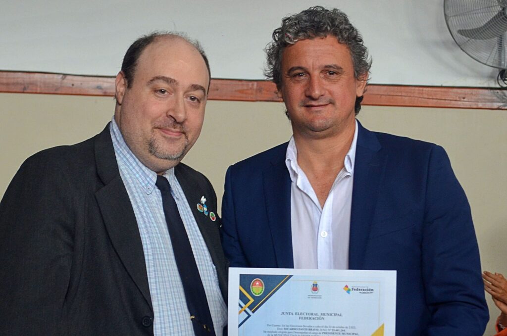 El Presidente Municipal de la ciudad de Federación Ricardo Bravo, reelecto en los comicios del 22 de octubre, la Vicepresidenta Municipal electa Silvana Monzón y los integrantes de la lista de Concejales electos, recibieron sus respectivos Diplomas, de parte del Presidente de la Junta Electoral Sergio Rondoni Caffa.