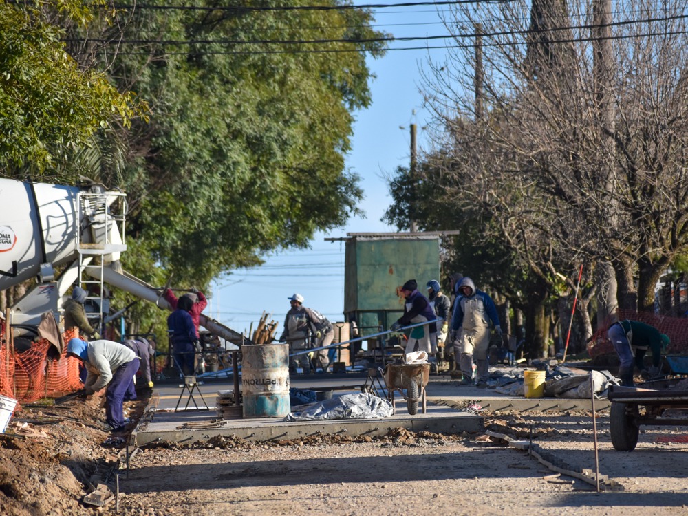 Calles Fochesatto y 1° de Mayo: Se prepara ripiocemento para la mejora de la calzada. Además, en la intersección con calle Güemes ya se concretó el pavimento y se continúa rellenando la cuadra restante.
