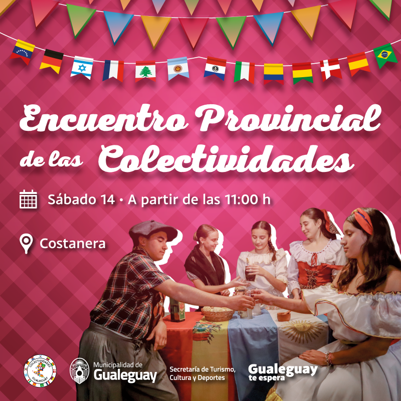 El próximo sábado 14 a partir de las 11:00hs. en el predio de la Costanera, los esperamos para celebrar el 8vo Encuentro Provincial de las Colectividades.