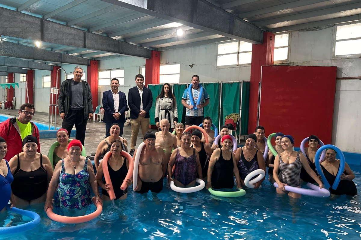 Este lunes, en la pileta climatizada del Club Neptunia, ubicada en la cancha de la Liga, se dio inicio a la temporada de gimnasia acuática para adultos mayores.