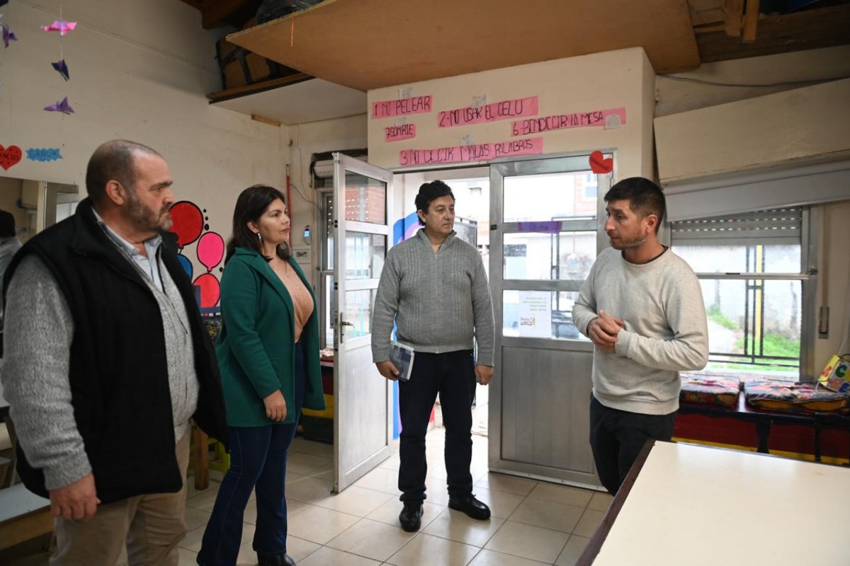 La responsable de área de Niñez, Adolescencia y Familia (ANAF), Virginia Castillo, junto con el representante de comisiones vecinales, Juan Marcón, y el director de Desarrollo Social, Marcos Henchoz, realizaron una visita al espacio Emaús, ubicado en el barrio Médanos.