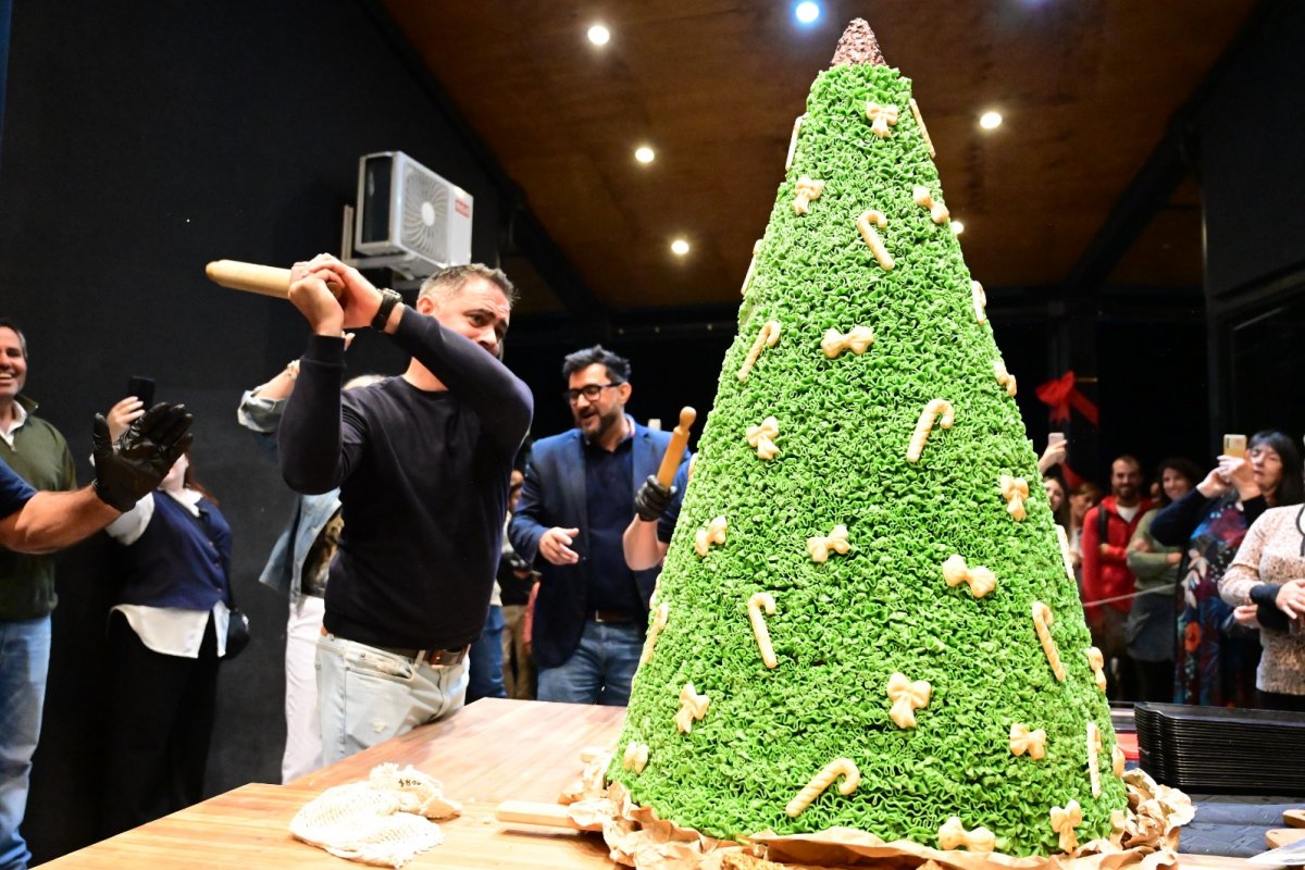 Uno de los momentos más esperados fue la presentación y posterior rotura del árbol de chocolate mas grande de Argentina, de Carpa Azul, elaborado con 69 kilos de chocolate y decorado en colaboración familiar. Paola Fernández y Claudio Blanco, dueños de la chocolatería, destacaron su compromiso con la innovación: