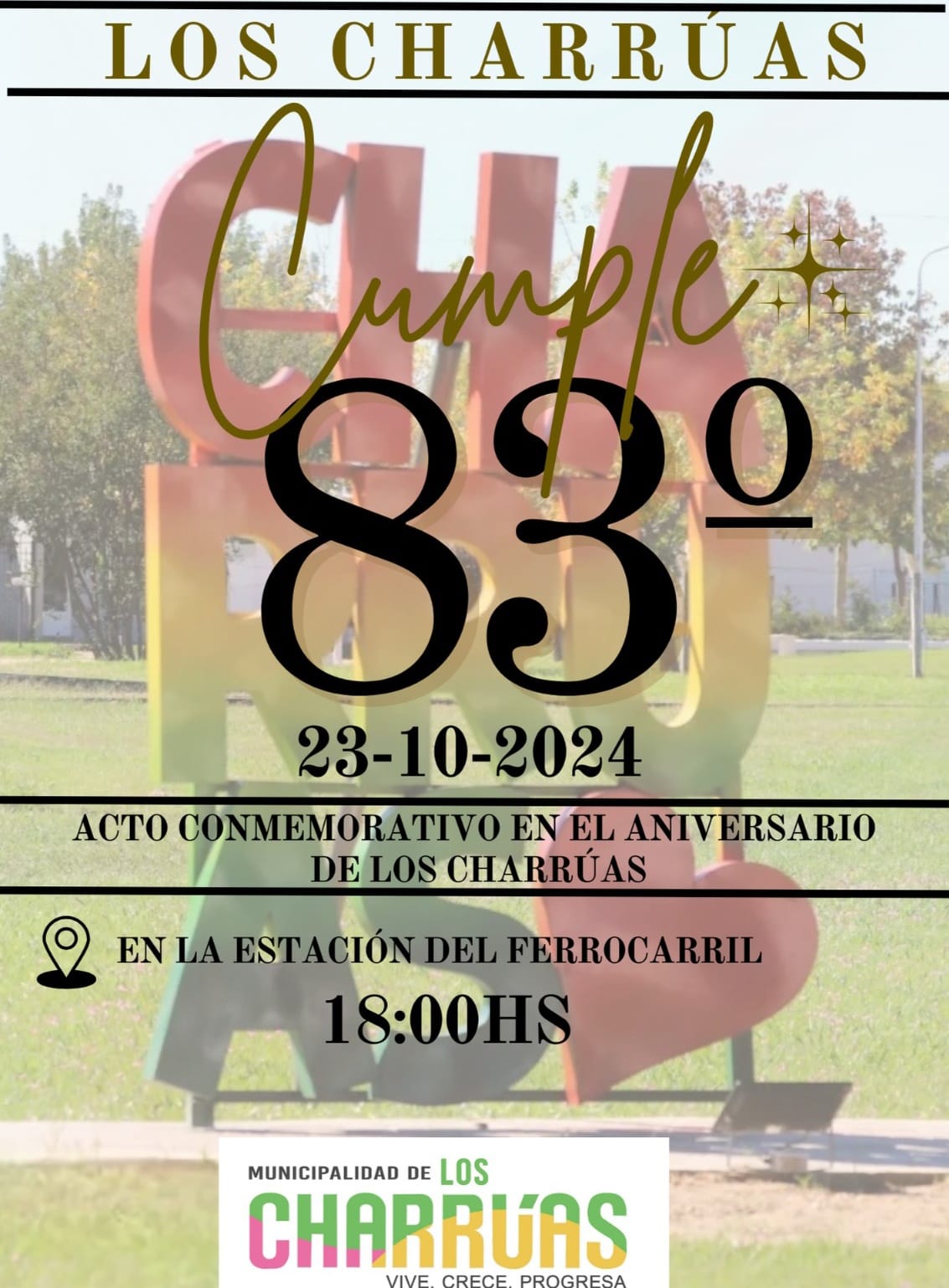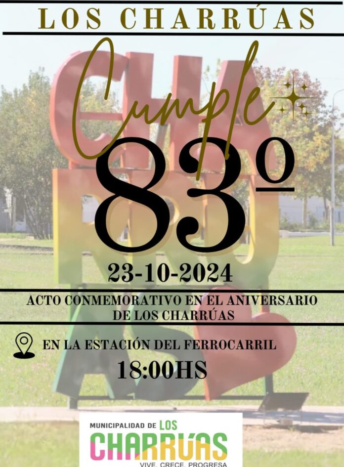 Desde el Municipio invitan a participar de la celebración por el 83° aniversario de la fundación de Los Charrúas.