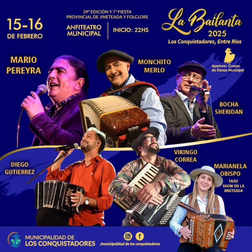 El 15 y 16 de febrero de 2025 se realizará en Los Conquistadores la 39ª edición y 7ª Fiesta Provincial de Jineteada y Folclore “La Bailanta”.