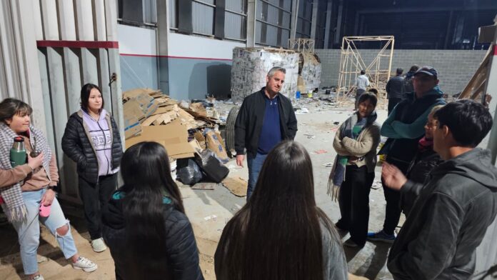 El Intendente de Colón, José Luis Walser, junto al Secretario de Desarrollo Humano, Juan Pablo Villalba, visitaron a los jóvenes de la promoción estudiantil de Colón en el predio de la ex metalúrgica, donde están trabajando en la construcción de un muñeco gigante para los festejos de la primavera.