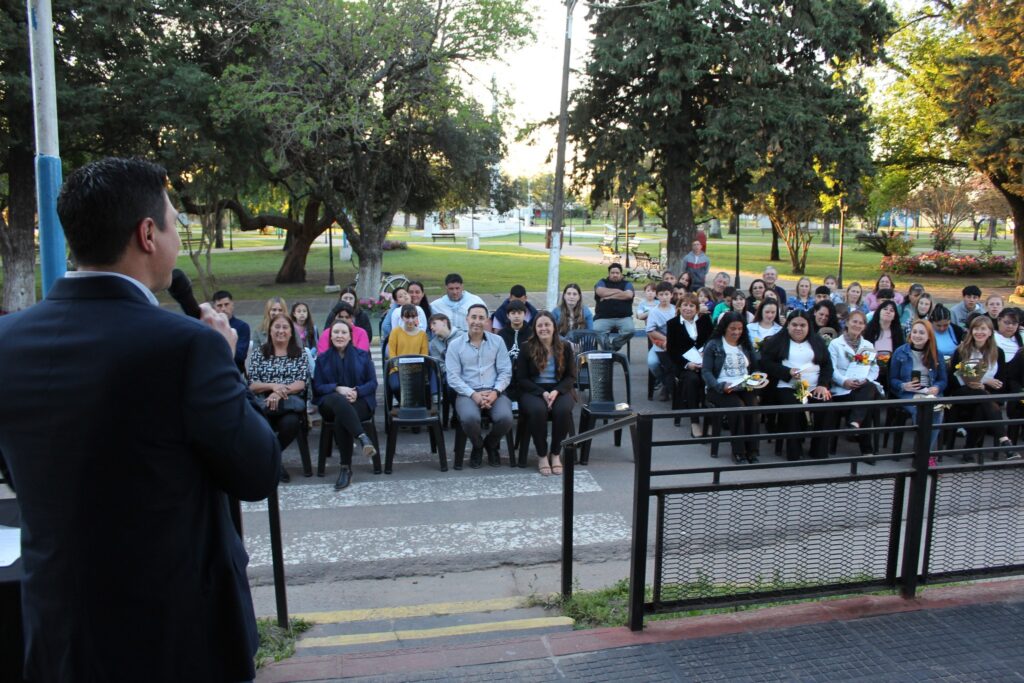 El acto fue conducido por Belén Bonnin, secretaria del H.C.D. y nexo entre la Escuela y el Municipio para esta iniciativa que ha comenzado en septiembre de 2023. Junto a los mencionados, estuvieron el secretario de Gobierno, Dante Adon; el director de Deportes y Cultura, Gerardo Balleretti; la supervisora zonal, Luisa Ledesma; la directora de la E.E.T N°7, Sandra Schlotthauer; el jefe de Taller, Luis Colombo; y el encargado de Oficina Técnica, Lucas Doulay.