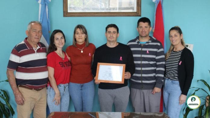 En la mañana de este viernes, en la sala de sesiones “Elso Daniel Villaud”, Pehuén “Pilu” Gaitán, hijo e integrante del grupo del Pocho, recibió un diploma de reconocimiento en nombre del autor del Himno. Estuvieron presentes la presidenta del H.C.D., Marcela Dallazuana; la secretaria del H.C.D., Belén Bonnin; y los concejales Patricio Courvoisier, Ruben Salvagno e Ivana Velzi.