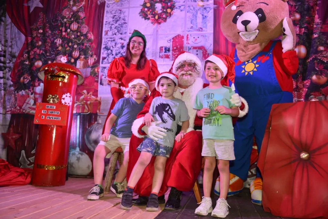 En el escenario montado detrás de la Oficina de Turismo, cientos de niñas y niños dejaron su cartita y recibieron un regalo de Papá Noel, además de tomarse una foto.