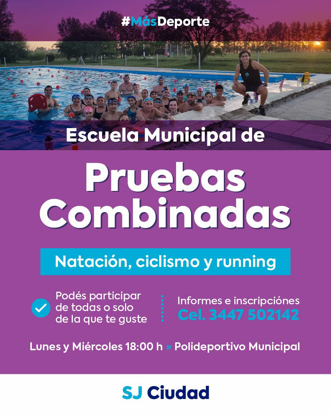 Todos los lunes y miércoles a las 18h podes practicar natación, ciclismo y running, actividades que se podrán practicar de forma integrada o elegir la que más te guste.