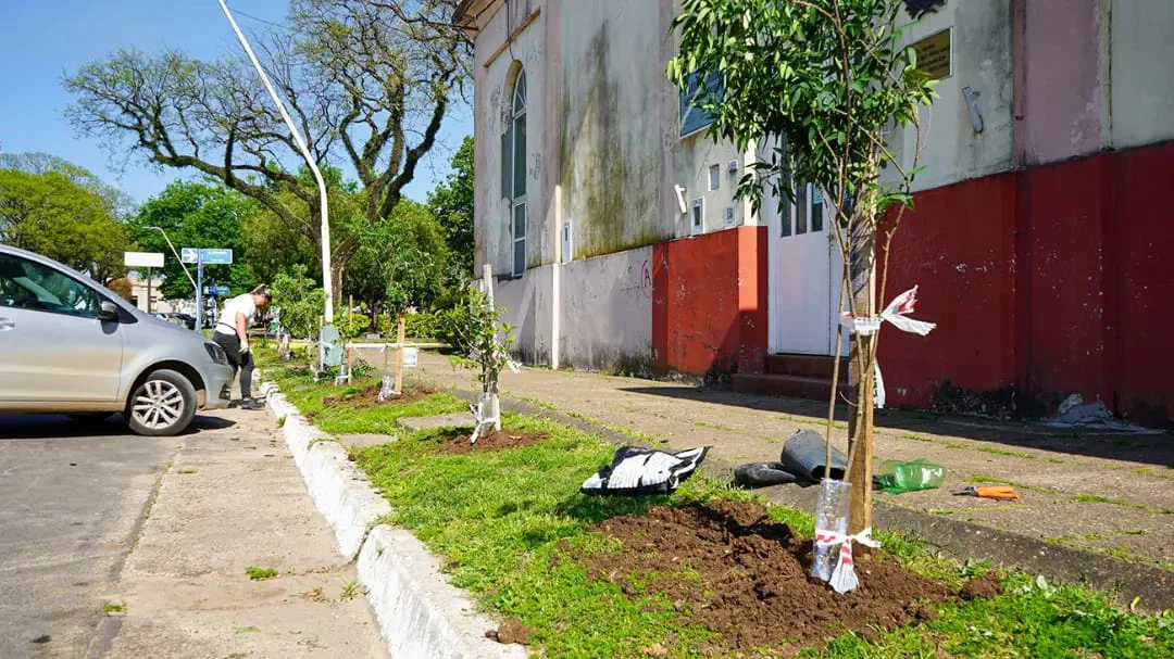 Este martes por la mañana, personal del área de Ambiente se encuentra realizando plantaciones de diferentes especies nativas en el radio 1.