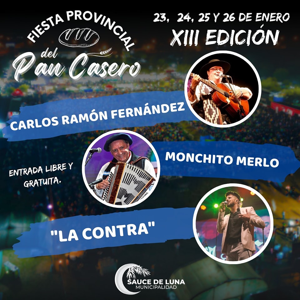 La edición XIII de la fiesta provincial del Pan Casero 2025 se realizará los días 23, 24, 25 y 26 de enero en Sauce de Luna.