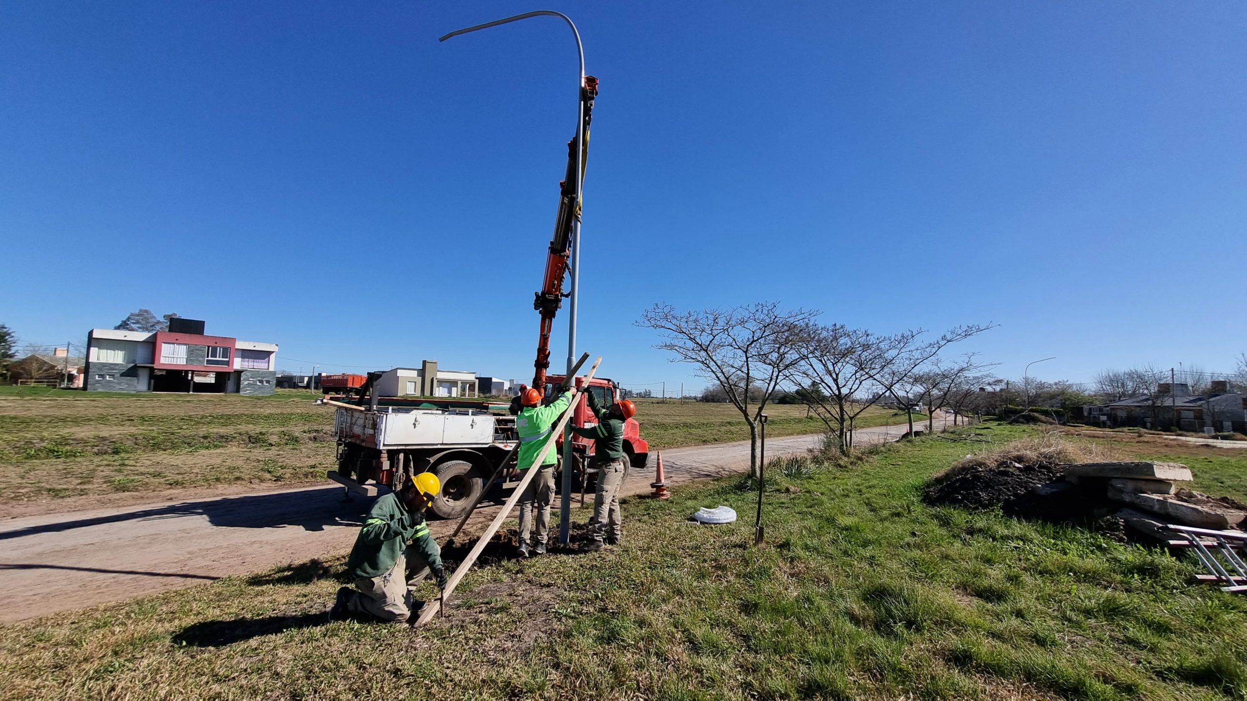 Personal municipal tuvo a su cargo la fabricación íntegra de las columnas de alumbrado, mientras que otra cuadrilla estuvo abocada a las tareas de zanjeo para el tendido eléctrico subterráneo y posterior habilitación del servicio.