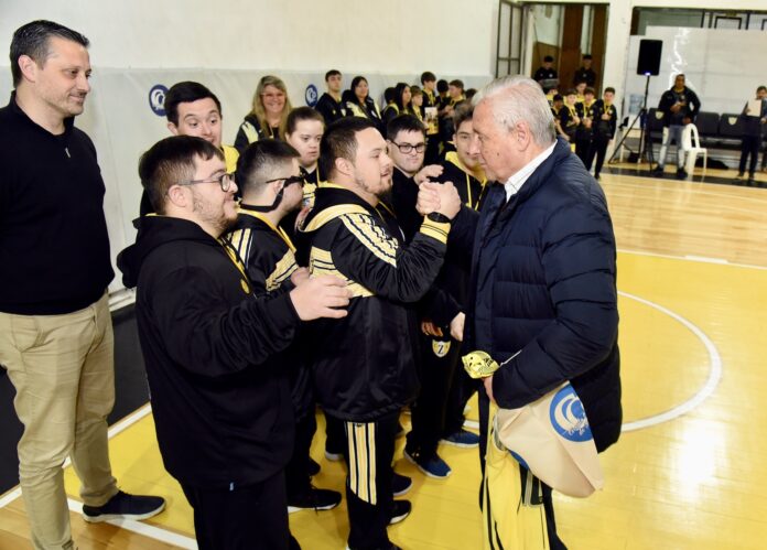 En el acto también se reconoció a los chicos de Zaninetti que participaron en la ciudad de General Alvear (Mendoza) de la cuarta edición del Torneo Nacional de Básquetbol para Personas con Síndrome de Down. En total, ocho jugadores integraron el equipo “amarillo”, que viajaron acompañados de su profesora Natalia Carvajal y de sus respectivas familias.
